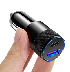Cargador de Metal USB PD para coche, Cañón de aleación de aluminio, cargador de coche, cargador de teléfono móvil montado en vehículo, venta al por mayor transfronteriza