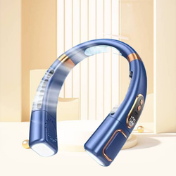 Petit ventilateur de cou électrique suspendu 2 en 1 rechargeable par USB avec affichage et éclairage LED pour intérieur et extérieur
